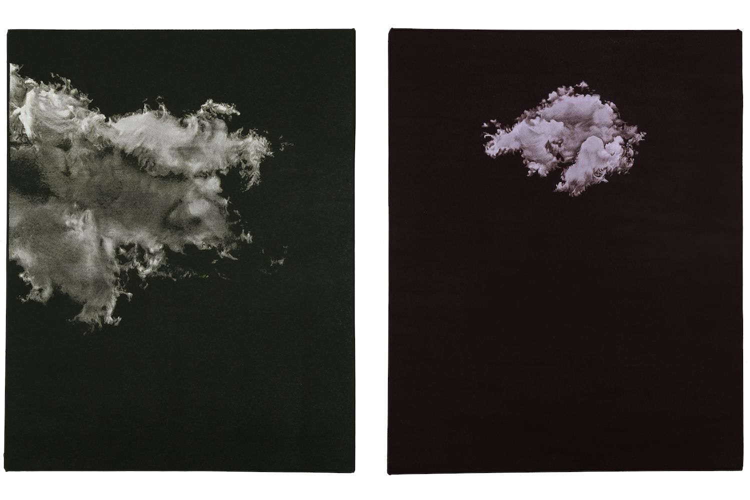 Other works also juxtapose the strangeness of the aesthetic object with current events. Donna Ong’s dreamlike photomontages portray tropical forests from colonial times to the present day. Adeel uz Zafar’s instinctual response takes the form of distant, cloudlike apparitions. His diptych Ascension (2017) shows these celestial bodies suspended in a black, undefined space. Wyn-Lyn Tan’s Blush/Anti-Matter (2020) and Ian Woo’s Lightness Path 2 and Lightness Path 9 (both 2016–17) place emphasis on a high degree of abstraction — perhaps the only approach that is able to provide a vision that transcends the everyday.