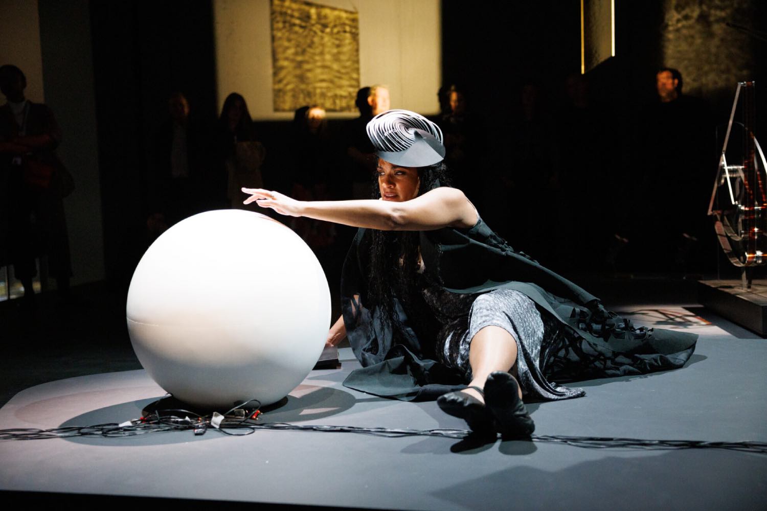 Against the darkened Kravis Studio at MoMA, a network of taut wires spans the space on a diagonal, evoking the strings of an abstract, celestial instrument — less a web than a spatial tuning device. These cords hum with latent energy, responsive to even the subtlest vibrations of light and sound. Not merely structural, they activate the room as a charged field of potential. “The Ocean of One’s Pause,” Rosa Barba’s latest project, gathers twelve sculptural and cinematic works spanning fifteen years of her practice, transforming the gallery into a site of intersensorial orchestration: at once instrument, observatory, and signal chamber.