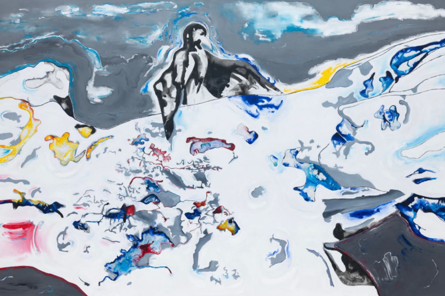 While I’m looking at the piece When A Body Becomes A Landscape (2024), a gallery attendant approaches me. “Did you see the face?” she asks. At first, I’m not sure what she is after, but I indeed did see it: on the right side of the painting is a vague, shifting face that seems to emerge from the texture. It’s barely there, just a suggestion. But when you see it, it stays with you.