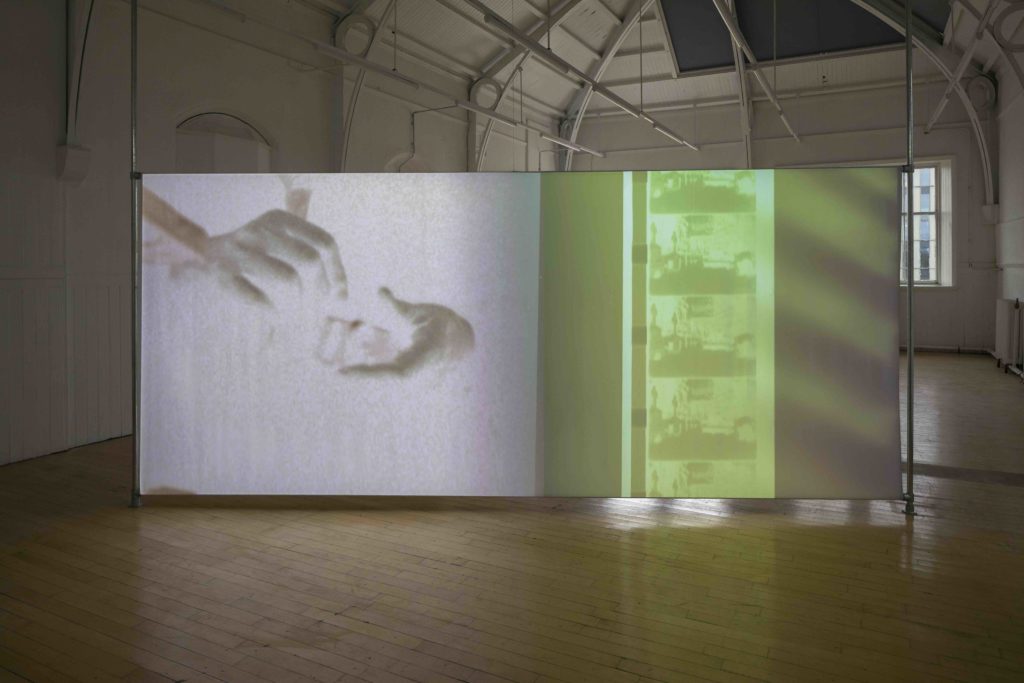 The show, curated by Chloe Reith, brings together the last three years of the artist’s production and It compellingly highlights Peng’s spatial interest in translucency – Afternoon Hearsay is projected onto a double fabric that allows viewers to see the film also from the back, hence blurred and reversed; Déjà vu is projected onto the glass of a window; and Autocorrects is projected onto three acrylic sheets — which could allude to the porosity of images and stories when placed under material and metaphorical exposure.