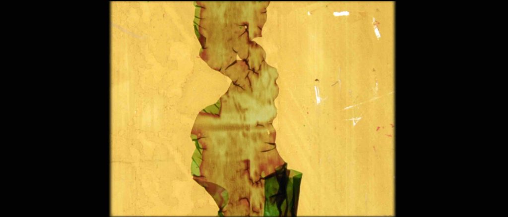 A notable example is a multi-sensory composition combining 16mm color film, digital audio, poetic voiceover, and a clay 3D-printed pen holder styled like an antiquated ornament. Peng employs experimental photogram techniques by directly exposing a metal wire onto film negative, producing abstract, trembling images that evoke loss, disorientation, and disorder. The 3D-printed pen holder, resembling a wounded human body, underscores themes of bodily scars and trauma.
