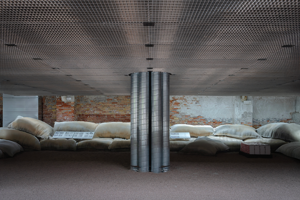 AF: There was a whole series of fictional elements. What was on display was a mock-up designed for the exterior but placed inside, and that’s how it worked for the Biennale. There is too much to see at biennials, so I decided to focus on an architectural model, as large as the real thing, and stage a simulation of the exterior. But if you think about it, the project itself is the opposite: an interior space, but designed for the exterior.