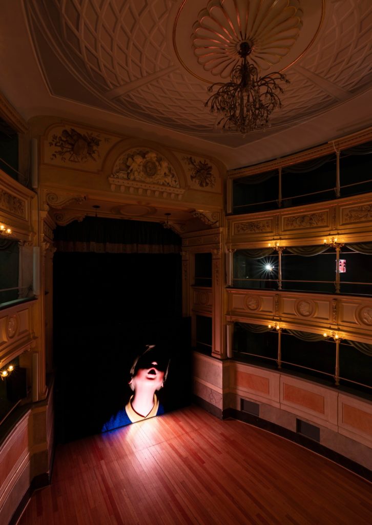 This might be through structural play, as in Monelle (2017), in which characters, once more enclosed within a very specific architectural space — the Casa del Fascio in Como, formerly the headquarters of the local National Fascist Party branch — do not exist as characters per se, but as figures strategically illuminated — not unlike Ludwig — by flashes of light. In between, we hear sounds of action — a body being dragged, a body falling, footsteps — but our mind fills in the rest, like Michael Haneke’s Funny Games (1997/2007) meets Hitchcock’s Rear Window (1954) meets Stan Brakhage’s early experiments in collage film, jump cuts, and in-camera editing.