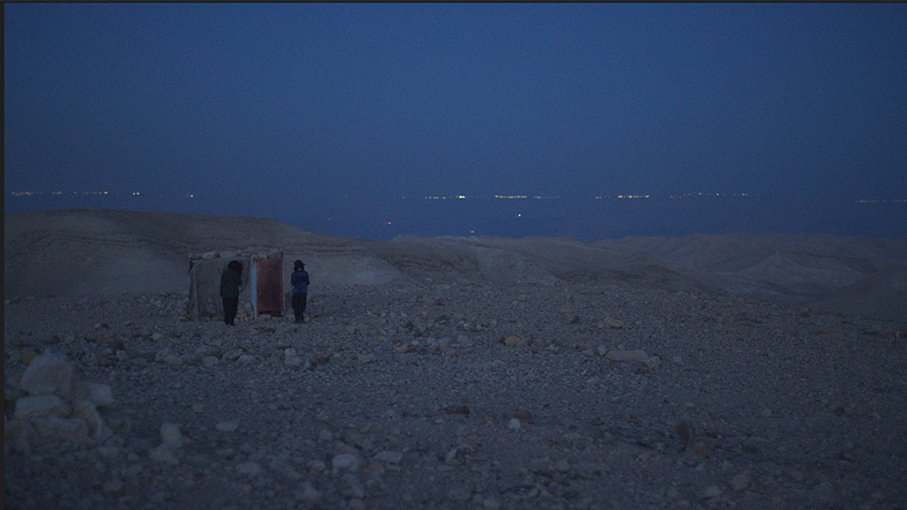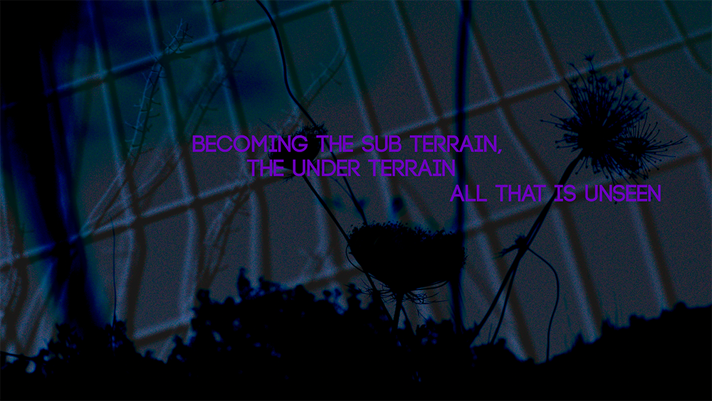 Much has been written about how the power of images and language has shattered under the weight of genocide and Israeli state propaganda as the violent legacies of 1948 accelerate. I feel it now, as my words push up against the edges of the page, unable to fully express the realities they attempt to convey. Abou-Rahme and Abbas have worked from and with this place they call “being in the negative.” The idea appears in Prisoners of Love as both concept and form. They write: “Being in the negative is being what seems buried but continues to sprout. Being in the negative is to see the breaks as openings.” In one section, an image of a barbed wire fence appears in negative, vibrating and shifting in and out of focus. An overlaid image of a thistle, also inverted, suddenly seems able, by a trick of the image, to slip through to the other side of the fence. The flattening of both images allows a new relationship to emerge. Even when most of the information is stripped away, something persists, imagination continues to flow, creativity abounds. It is not the failures of language, images, and sound that are framed in the work but their enduring necessity and power.