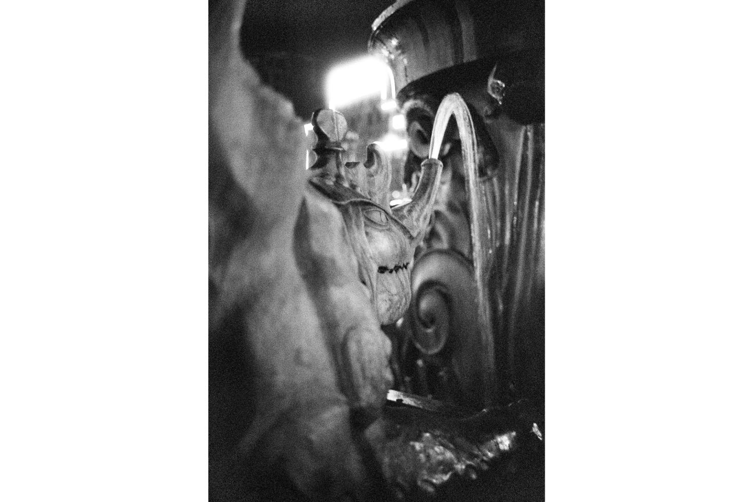 Preservation presides over authorship across Gaillard’s practice and ownership is entirely disregarded. It has to be. Take, for instance, the gargoyles from the Notre-Dame de Reims cathedral that were suspended in Palais De Tokyo for Gaillard’s 2022 exhibition “HUMPTY / DUMPTY.” During World War I, when a German bombardment set fire to the wooden scaffolding around the cathedral, lead from the building’s roof flowed down the gutters, solidifying as it cascaded from the mouths of the gargoyles. Gaillard presented the gargoyles as ready-made historical ghosts, but the act of exhibition was one of revelation, not endorsement. He claims authorship only for this revealing of the object rather than the object itself. Like Lützelburger transcribing Holbein’s drawings into woodblock carvings, the artifacts that Gaillard turns his attention to experience a translation, but only in reverence of the original and their histories. The work’s title — Gargoyles vomiting lead, 1873 1914 (2022) — offers their exhibition in “HUMPTY / DUMPTY” as a footnote in their lives (following 1873: the year the gargoyles were carved and installed, and 1914: the year of the fire that froze them in time). When the exhibition closed, they returned to Reims cathedral where they have the most value as part of the cathedral’s biography. In the world of the living, ownership is the gatekeeper of knowledge; it’s the dissemination of knowledge that gives it power. When the exhibition ends, many of Gaillard’s works are held only in collective memory.