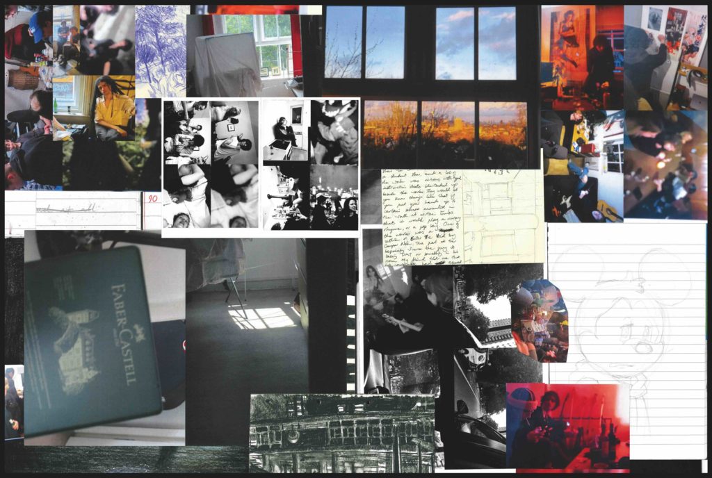 In that same text, the memory of classroom cheating slips into another — about using free editing software to stitch together a video from found footage: a skateboarder in Italy, 2006. The video is passed off by the narrating voice as original to her art teacher. In response, the teacher offers a memory of their own — a visit to a museum in Berlin a long time ago, tears in front of a Rembrandt painting — all while quietly seeing through the lie without making any accusation. A web of borrowed, half- true memories begins to form. One person’s lie becomes another’s truth. One detail — a tear, a skateboard, a desk — remains. Everything else dissolves.