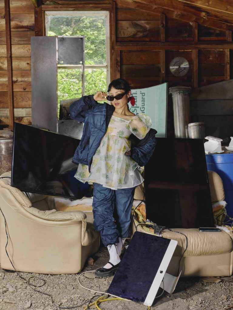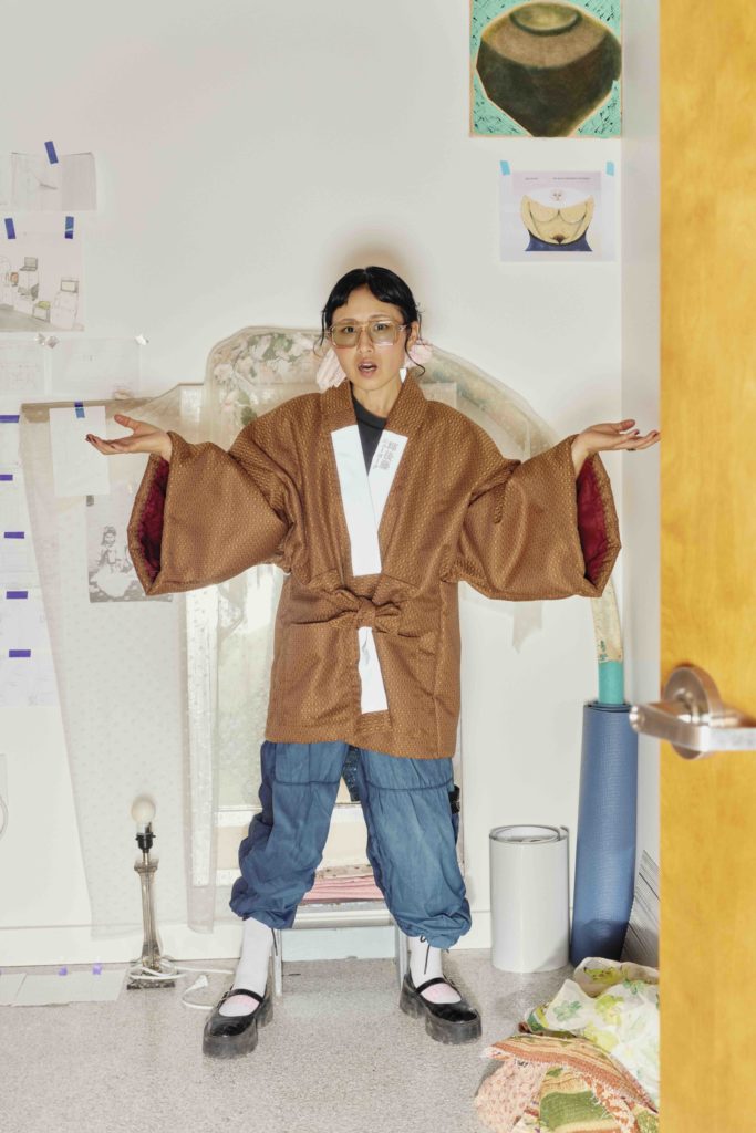 Born in Tokyo and raised in the Chiba prefecture, Goto began her creative endeavors developing textiles, designing garments, and composing songs. Working various day jobs, she drew and immersed herself in the city’s experimental music scene. In the early 2000s, she recorded tracks with collaborator Eiji Tominaga as the duo Mirin Mary. (Goto continues to make music as a member of the noise pop duo Masaaki.) At twenty-nine, she relocated from Tokyo to New York to work with artist and fashion designer Susan Cianciolo, whom she first met in 2004. Their collaborations would prove significant for Goto, whose move to the US prompted a total mind-body transformation. Immersed within the artistic currents of the city (“NY became my king,” she writes to me in an email), Goto existed in a complicated state of culture shock, admiration, and resentment toward a home country that she felt, at the time, left her unequipped to fully understand her new world. In an effort to reconcile these dissonant feelings, she and her partner, Kentaro Takashina, embarked on country-spanning road trips across the United States and Japan from 2010 to 2011, spending most of their time in rural locations.