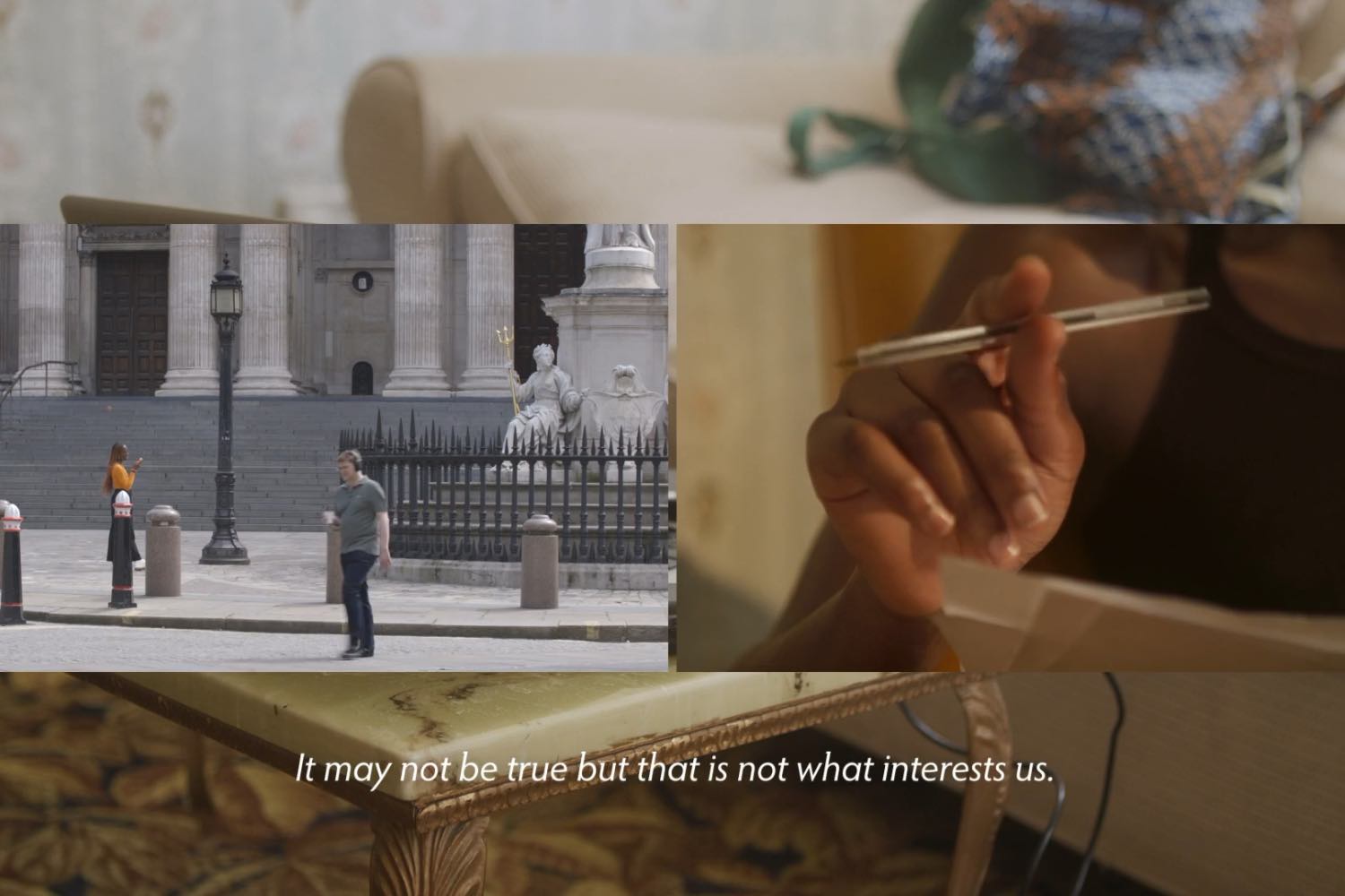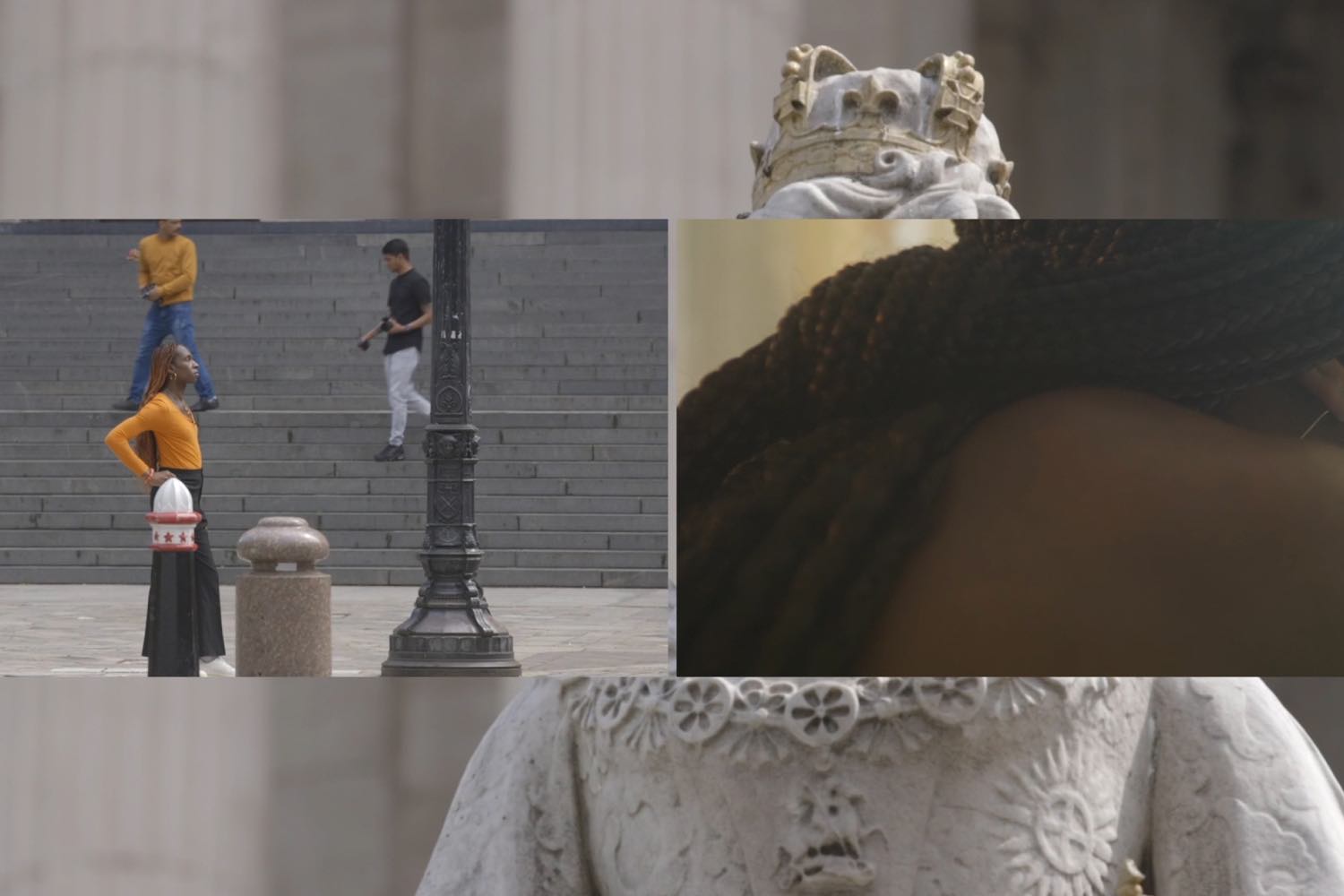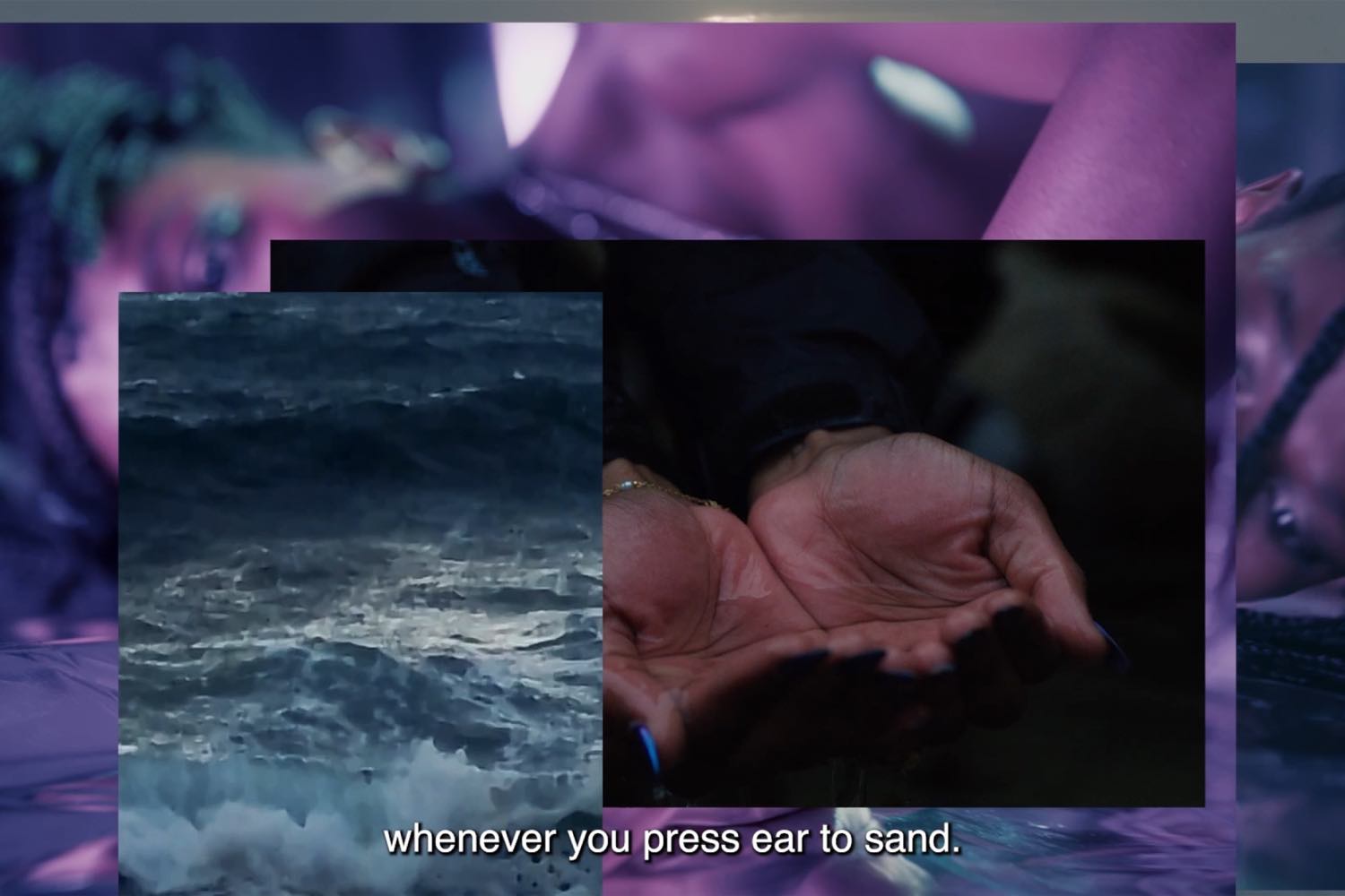 In Sodipo’s An Other Ending (2023), the voice is layered over a rolling barrage of disparate internet-quality images and speculates on what it would take to see the death of whiteness, and this voice links whiteness and capitalism as co-constituted. To paraphrase: perhaps whiteness will end when the last coal furnace breaks; perhaps it will end when great thinkers admit that violence against women is always eroticized; and perhaps it will end when the last English-speaking person dies. It is a seductive proposition to think that this language of the British, and of the international art world, could become extinct, obsolete, and no longer necessary. Sodipo returns often to these speculations of mythic proportions where the world as we know it breaks. In her film works, where she herself (as in Celeste – She of the Sea, 2023), her friends (Atlantic Cruises – A Rest Stop, 2021), and her favorite Tumblr meme girls appear, women come to the city hoping to live long enough to see the end of capitalism while at the same time knowing they will never survive if they don’t have some money.