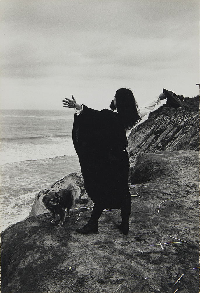 In the 2000s, her Historical Takes marked a return to photography and to San Diego. Unlike the modest urban landscapes of The King of Solana Beach, Antin stages opulent tableaux amid the sunlit hills of La Jolla, reimagining scenes from antiquity and mythological motifs with friends as models and elaborate costumes and props. In The Death of Petronius (2001), she renders the last moments of the author of The Satyricon, who, rather than give himself over to King Nero’s court, opened his veins, leaving behind his story of Rome succumbing to debauchery and decadence, a classic trope with an uncanny resemblance to present times.
