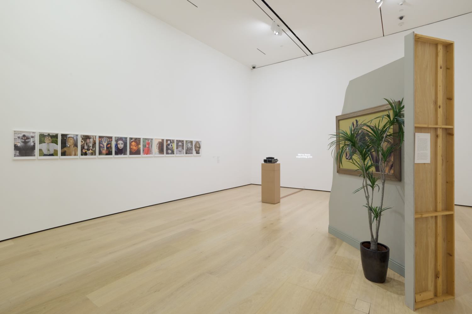The mostly monochrome and portrait-less show has an eerie sense of emptiness, a feeling of showing up to the party too late. The post-apocalyptic allusions read as more sinister than perhaps the curators intended, given recent events. The exhibition’s central room is occupied by Nikita Gale’s installation Private Dancer (2020–21). Light fixtures that look like they’ve fallen from the ceiling are piled together in the middle of the room. Flashing around like a spotlight searching for a subject, or a concert after the crowd has emptied out, the lights remain on, dancing for no one. Gale’s sculpture conveys a compulsive feeling of remaining: a manic search in the dark for the willingness to keep going, to return after disaster, to reinvent, to rebuild, to keep moving even if no one is left.