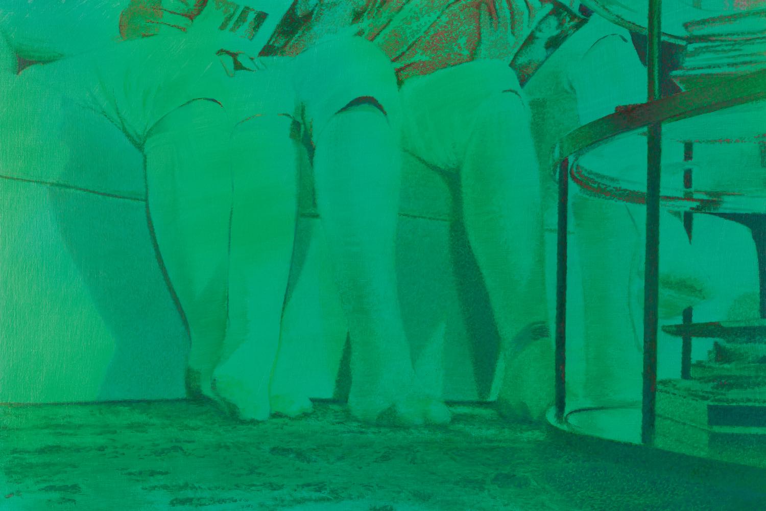 NW: I mean, that is an actual Wi-Fi password I borrowed from someone! I love that, because I’m always curious about which words or moments of their life people choose as their security mechanism. Which memory grants you access to someone’s personal space? What grants you access to someone? When I first typed in this password to get Wi-Fi at a friend’s apartment, I thought, “This needs to be part of the show!” It functioned metaphorically. The show consisted of a gate with intercom speakers and paintings drawn from footage taken from the intercom camera, with sound mapping out the inside and image laying out the outside of an apartment in the Lower East Side. The idea of a password enhanced the concept of breaching that gate –– and the ones behind it. How much of the space and its inhabitants can we flesh out from what is leaking through the intercom speaker? It became an exploration of access in the urban landscape, particularly in places designed to preserve an air of exclusivity away from the mainstream population. My last two shows, the one at Liste and “Breed” (2024) at Management in New York, both dealt with this dual notion of access: the loss of control over privacy on one hand, and an increasing obsession with membership-based spaces after COVID on the other. Aspects of access in public space continue to be a core theme in my work.