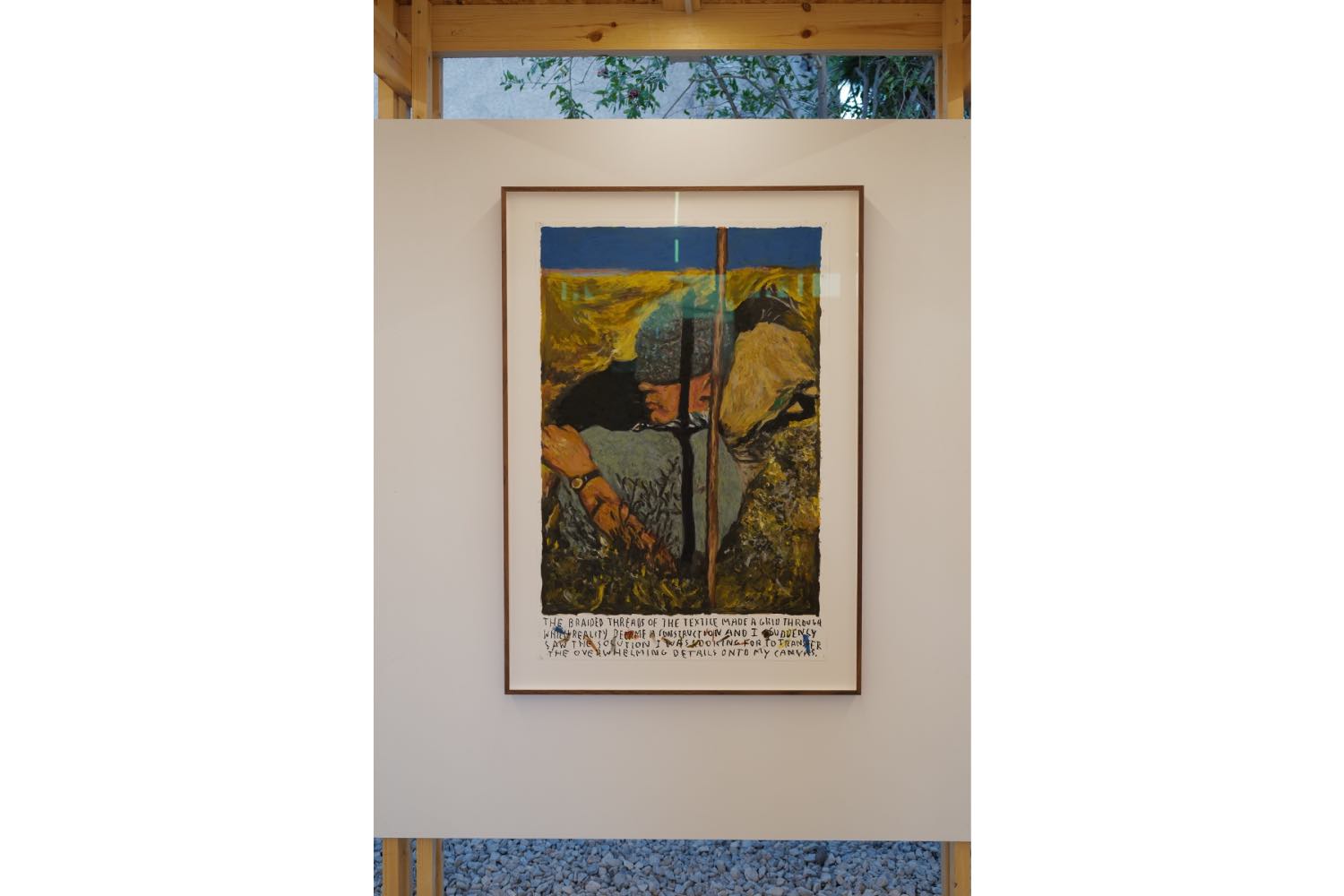In a wayward world, we grasp for anchors. A 2023 painting by Rinus Van de Velde depicts a solitary boat sailing atop a voluminous swell of sea with the handwritten caption: “You try to disguise the form and, through improper adaptations, obtain a deputy, which is purely personal, while just below it, the true will always continue to show itself, over which you have no control and is in constant motion.” As a threshold between departure and arrival, the sea is a metaphor for the churning collective consciousness — the ever-changing fabric of reality — that we navigate alone and together. Mounted on the raw, exposed surface of a stone wall, Lola Montes Schnabel’s ceramic composition The smell of fear (2025) is a topographical likeness of an island, in bright yellow with a blood-red tip, writhing in dark, turbulent waters. Yet perception changes when the horizon becomes the center. Nearby, the film Aqua-Rêve (2009) follows the mesmerizing underwater movements of her mother in a transformative moment, after jumping into the sea to overcome a lifelong phobia.