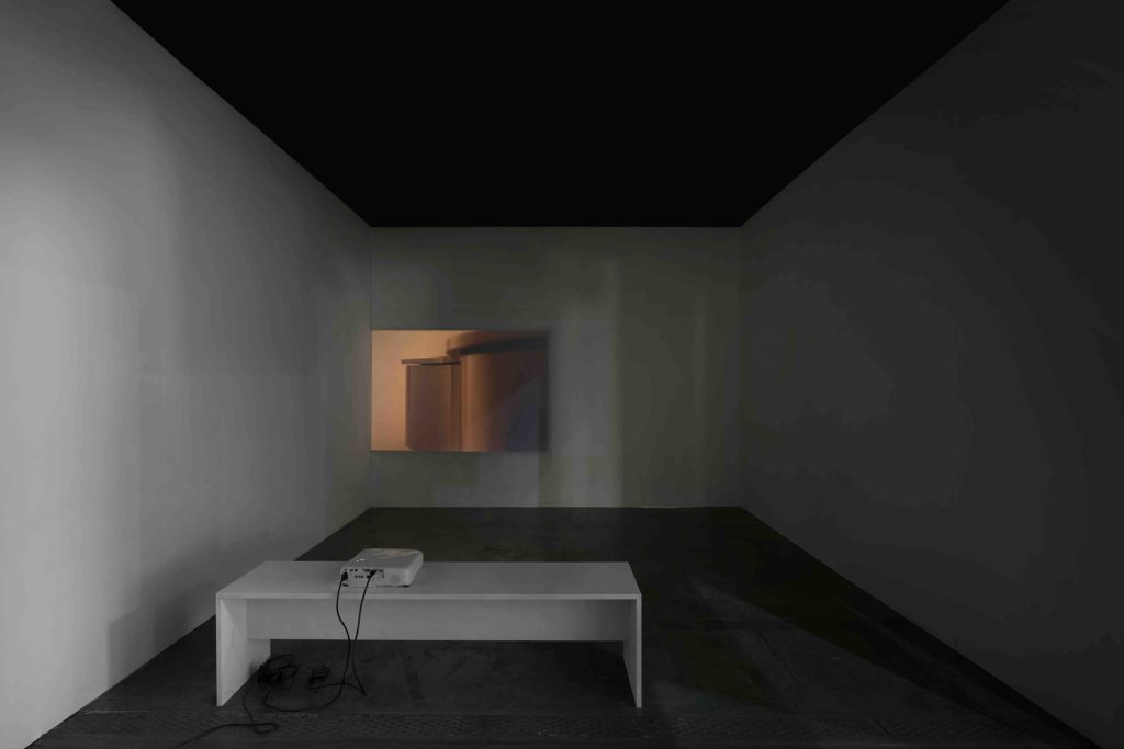 This minimalism continues in other works in which Giller explores the structures that enable the conditions of cinematic spectatorship in exhibition settings. The artist has stated that he has little interest in becoming a “filmmaker” or working in cinematic space. For Giller this is a temporal concern. Movie theater time demands specific restraints, while gallery time — what Giller has referred to as “reflexive time” as opposed to the “consumable time” of the theater — allows the viewer to float in and out of a viewing room: there is no insistence on an exchange between the film and the viewer.[5] Rather than demanding specific viewing conditions, Giller folds the constraints of the gallery into his work.