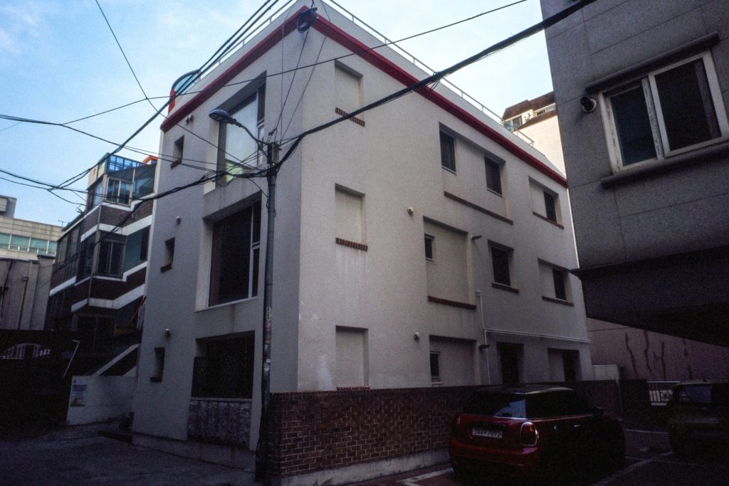 Hyo Young Kim of KHY architects explores structural precarity using minimal means. In Neighborhood Living Facility, Hyehwa (2022), a thin stone beam floats on the façade, while the guardrail is merely painted — emphasizing flatness like wallpaper rather than material specificity. The sagging reveal wall was the most abstract and intentional element in the project. Yet immediately after completion, signage was installed, and the building was subsumed into the city. In this way, “real” architectural approaches in Seoul often fail.