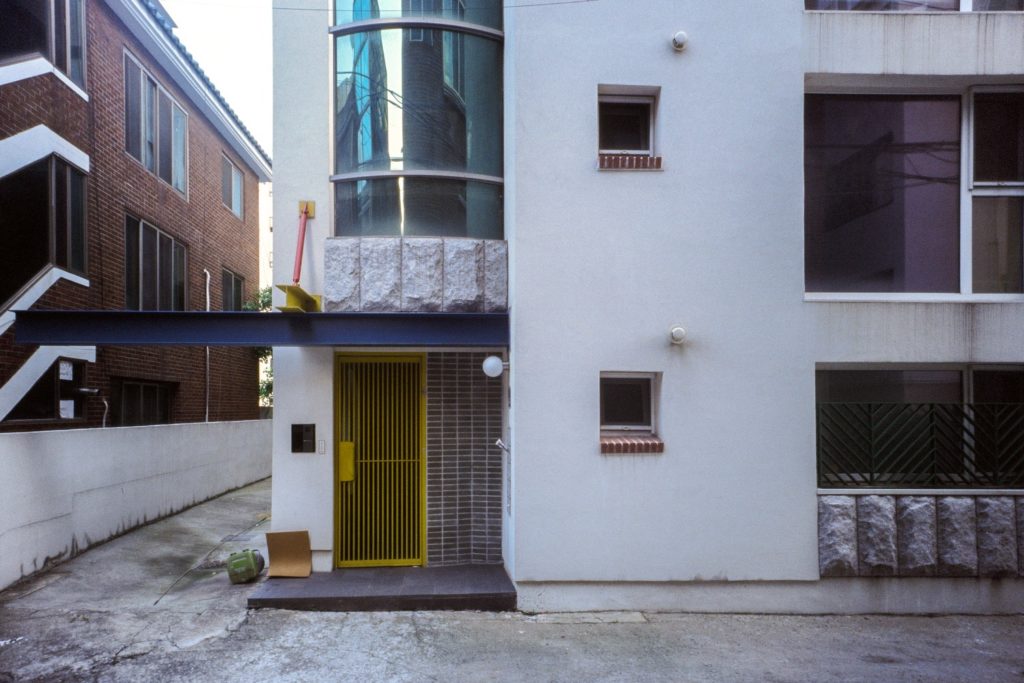 While Flora and Fauna injects ambiguous excess into banal institutional architecture, aoa architects finds surreality in functional overdrive. For Cascade House (2019), architect Jaewon Suh of aoa responded to a client’s request to “make as many doors as possible.” A marble column at the center divides the living room, kitchen, and bedroom. This spatial juxtaposition — where all rooms are visible from the center — offers a surreal, set-like domesticity. Diagonal height restrictions shaped the elevation; the symmetry was predetermined by cost. Urban constraints were met with cheap ornamental stone (hokdugi) and uniform square tiles, constructing a humble yet economical virtuality. Mangwon Villa (2021) is a renovation of one of the most common types of rental housing in Seoul: the low-rise villa. Through the architect’s intervention, the white stucco walls begin to function like a museum backdrop,[12] effectively erasing the architecture itself. While certain original features — like the rounded window frames — are preserved as a gesture of respect, the oversized canopy is defended with a shrug: “The entrance has to look great!” The “part” is exhibited, while the “whole” disappears — as in a museum.