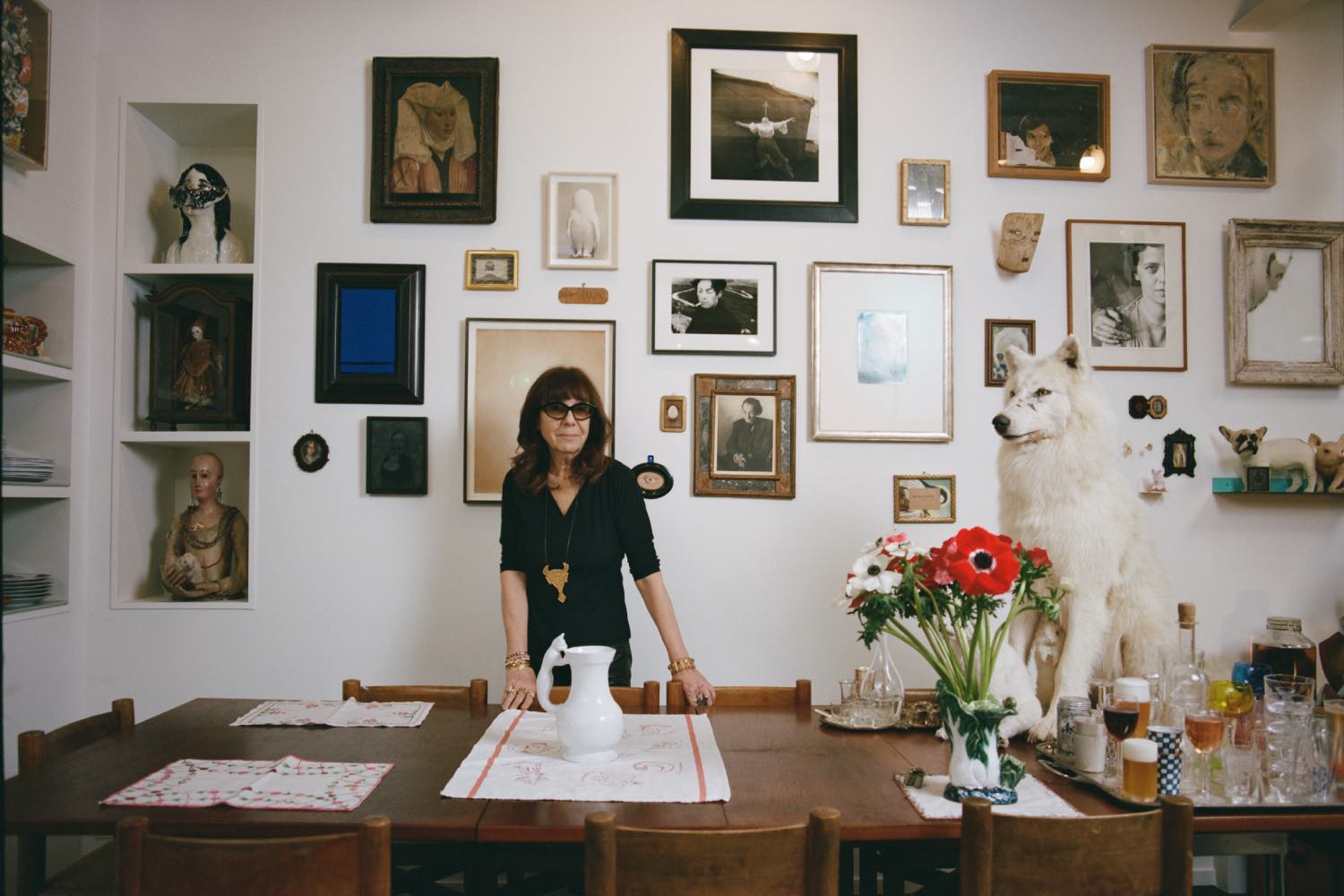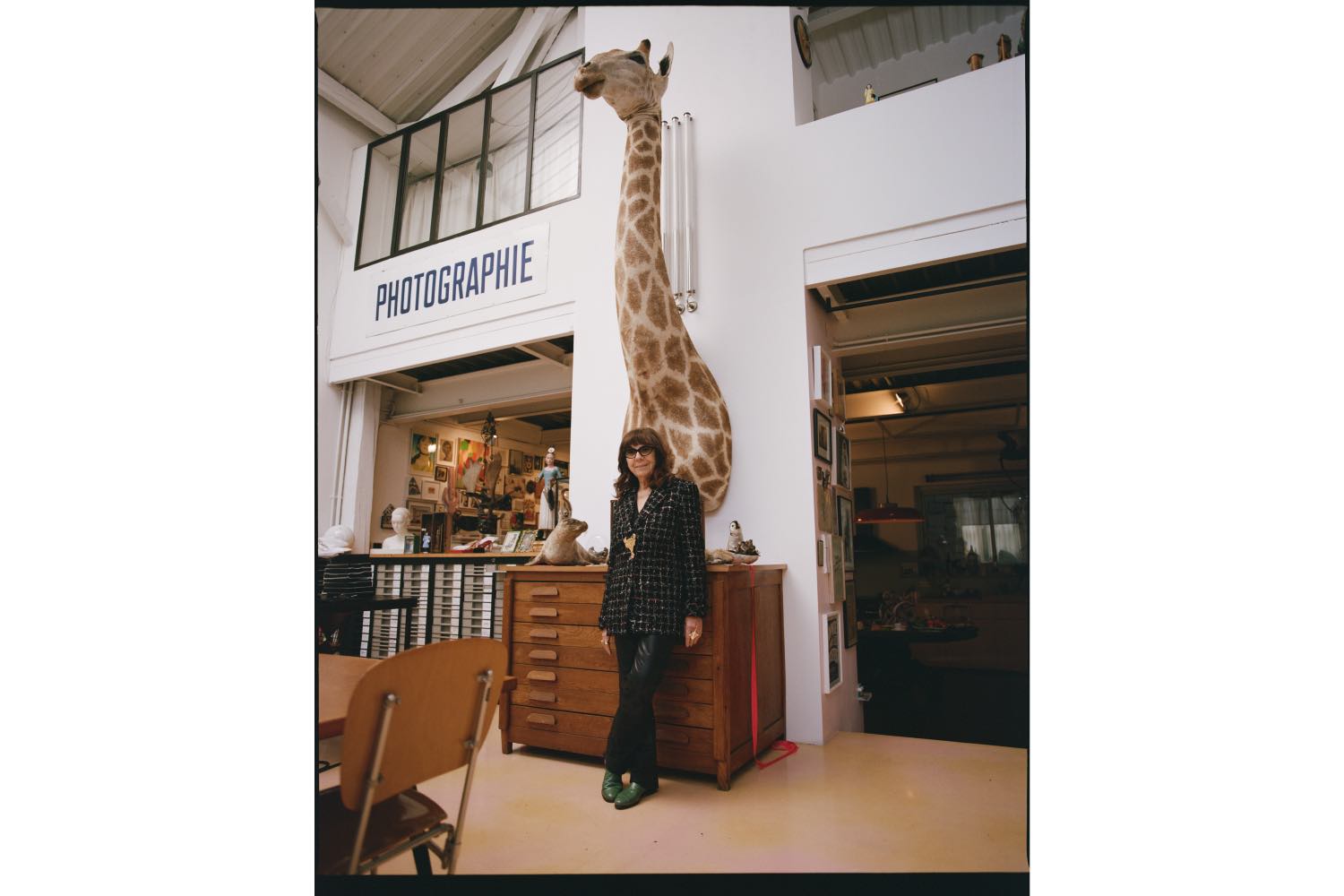 Upon entering the living area, visitors are greeted by an unexpected sight: a taxidermy monkey version of Laurie Anderson. The walls showcase more peculiar decor – a giant giraffe neck representing Sophie’s mother, a wolf symbolizing Emmanuel Perrotin, and a baby white tiger standing in for Paula Cooper. It becomes apparent that in Sophie Calle’s studio, everyone is represented by an animal. Hundreds of these animal figures are scattered throughout, from the living room to the kitchen and bedroom.