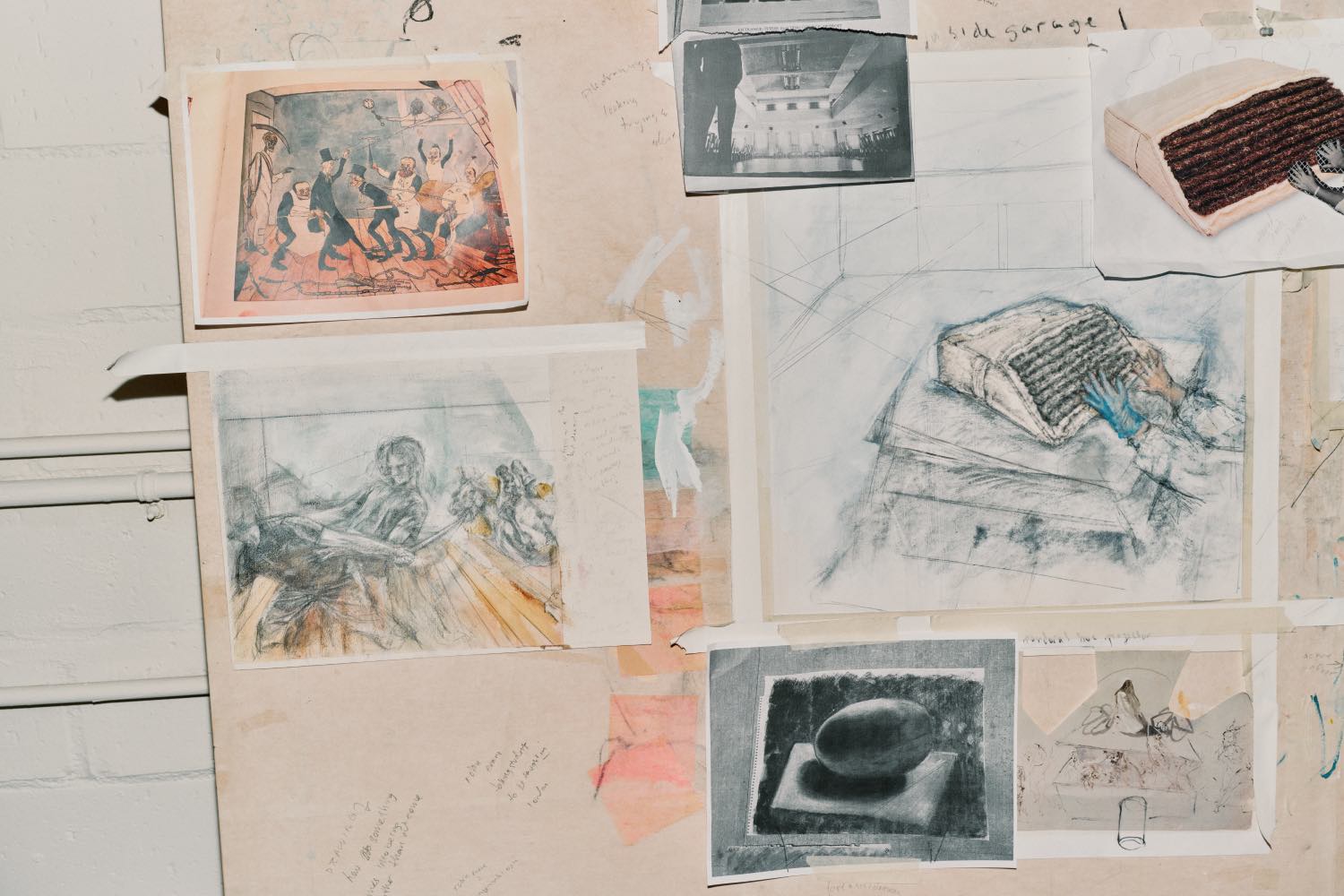 As such, Friedman-Pappas’s researched approach and austere objects are laced with affect — a kind of mourning and ennui present in drawings like Into the Wind (2020). The work depicts a man urinating into an already filled underground sewer tunnel in an attempt to collapse the scaffolding above him, reflecting the futility of subversion,as if to say, we’re all just pissing in the same well, over and over. In these ways, the artist’s work confronts our repressed fears, asking whether the capitalist impulse to repurpose discarded matter stems from a fear of death — or of life? How are we supposed to metabolize this world?