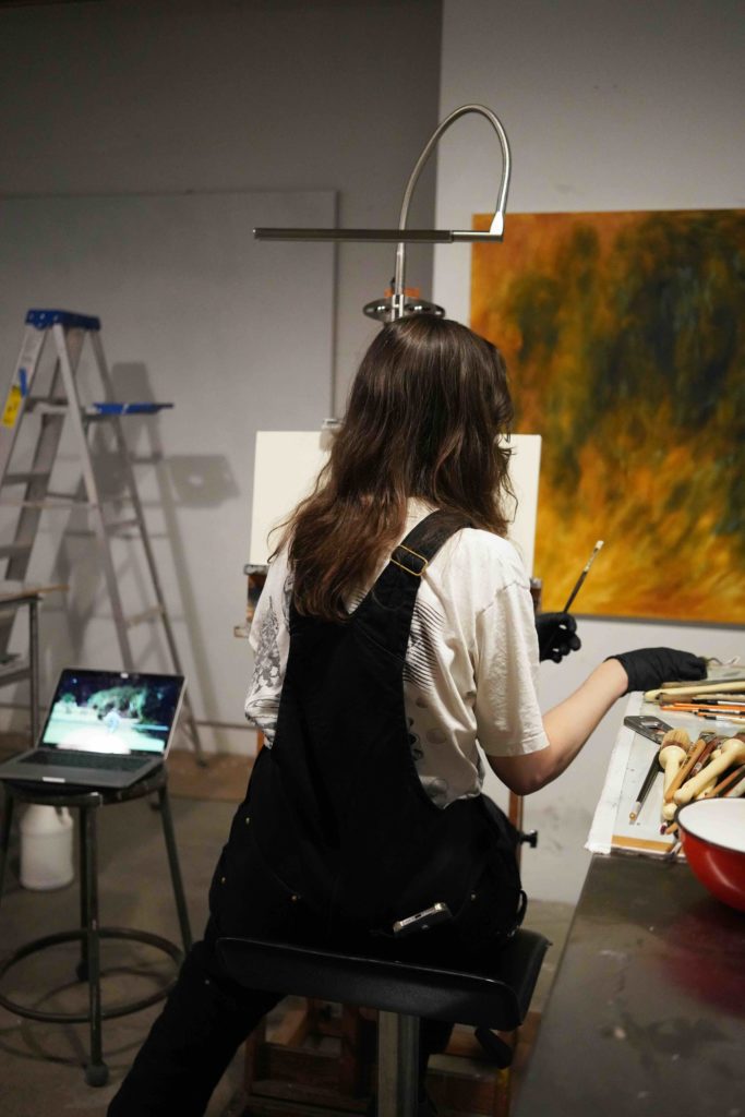 OG You mention Abstract Expressionism, which is obviously a reference that haunts so much abstract painting and has a tradition of a very specific relationship to the body in the act of painting — I’m obviously thinking about those Life magazine photos of Jackson Pollock making his drip paintings. What does the act of painting look like for you?
