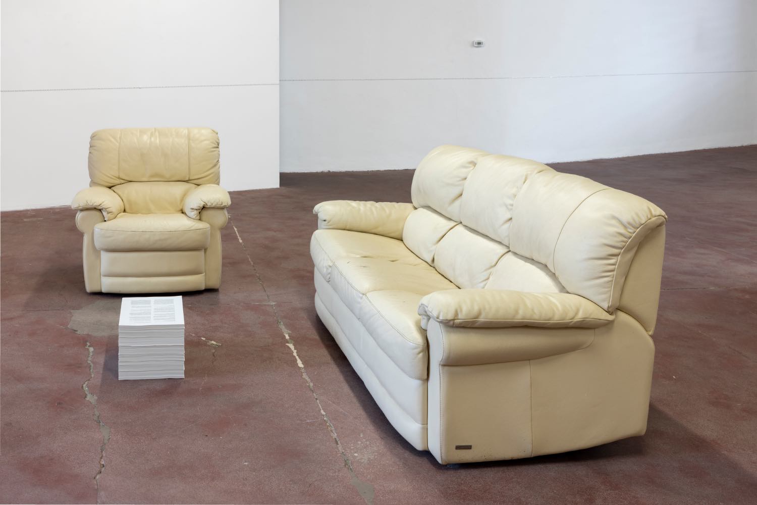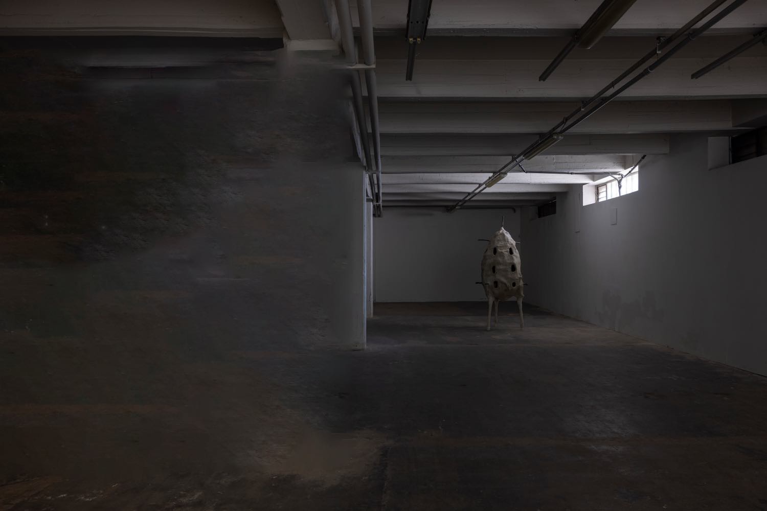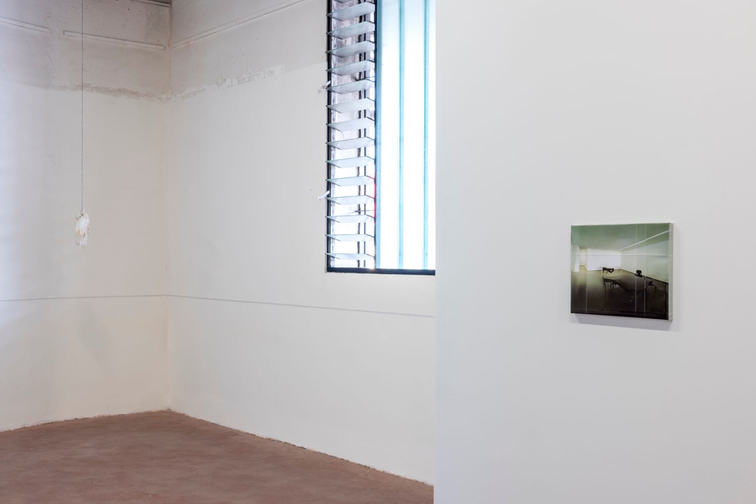 Ghislaine Leung cuts through this continuity with a conceptual scalpel. Her work Surgery (2024) appears on both floors of the gallery, in which a portion of the architecture – precisely 1% – is removed and wrapped in industrial plastic. This gesture, echoing both institutional critique and personal biography (her hysterectomy), is subtle yet radical. Leung subtracts instead of adding, exposing the body of the institution itself and the systems through which we perceive space and time.
