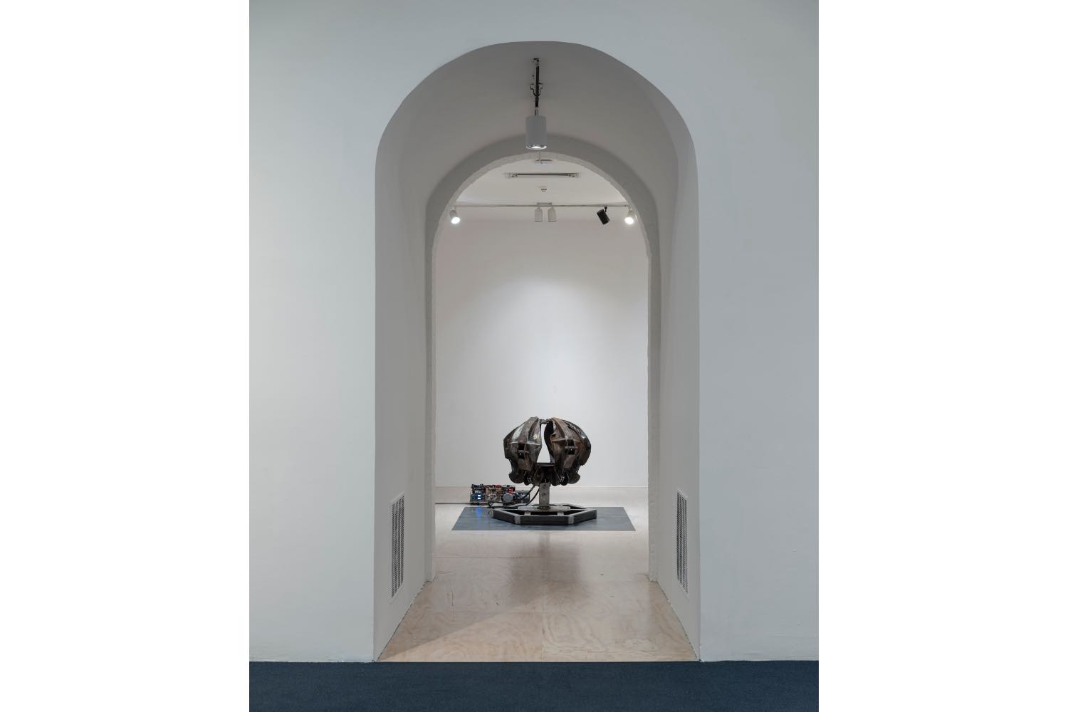 Are forces and relations of production quasi-metaphysical or biological? “The Gatherers” gestures toward the social and its contained mutability. To this end, Geumhyung Jeong’s Removed Parts: Restored (2025) surgically and performatively lays bare robotics used as props in information dissemination. Each dissected part defies calculations of modulated interchangeability, resolutely insisting on its own difference. For Jeong, the production of subjectivity and its labor is ever-recursive, and recesses and slippages sometimes can be more paramount than the totality. Still, “The Gatherers” offers no lesson. Look toward Samuel Hindolo’s painting Galgenberg Hill (2024): the Palace of Justice in Brussels is stripped of its grandeur, resembling dented silhouettes, and justice is yet to be served in fallen empires. History is neither utopian nor anti-utopian.