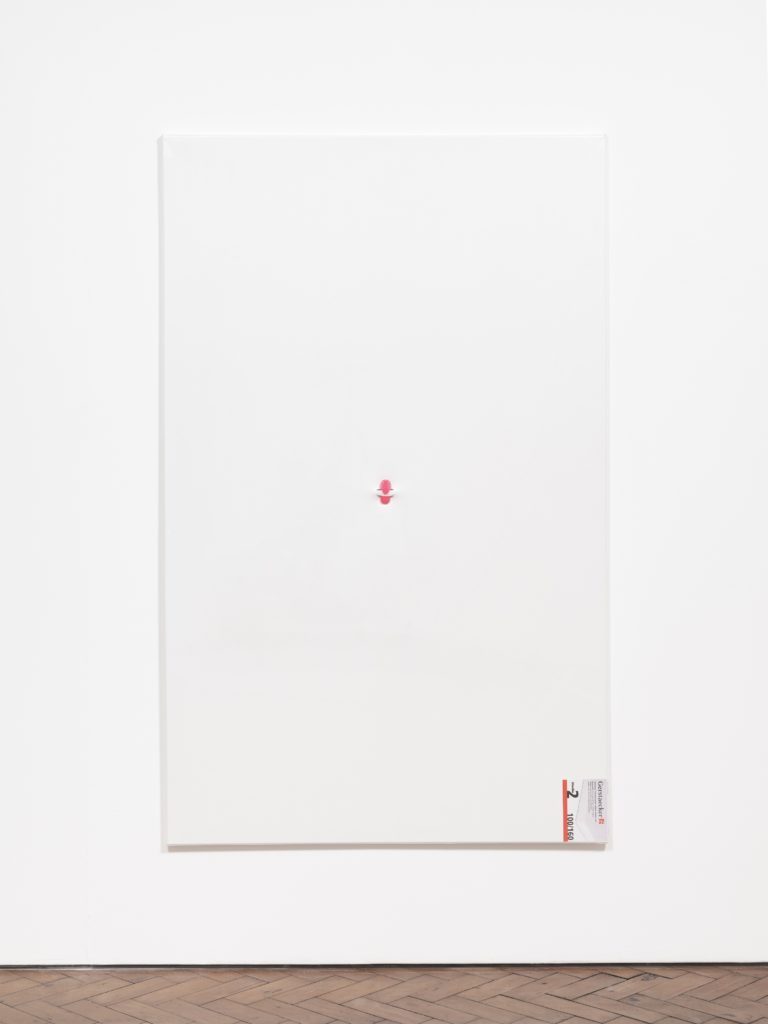 Arranged into continuous borders along the gallery’s perimeter, they become understated vessels for turning inward and looking back to the art histories that have delineated what art can or should be. Such economic, slyly literal gestures embody the efficiency our world expects from daily life, but are delivered with a Sturtevant-esque poker face, or Lily van der Stokker’s pastel minutiae of femininity, and a reticent wit distinctly her own. “That’s so you,” she mimics, comparing her work’s structure to an “in-joke” that keeps returning among friends. Recalling the vertical lines motif of Daniel Buren’s monochrome awning stripes begun in 1966, her pen fences expand our well- worn knowledge that institution and commerce are never neutral, always time-stamped with subjectivity and cultural specificity.
