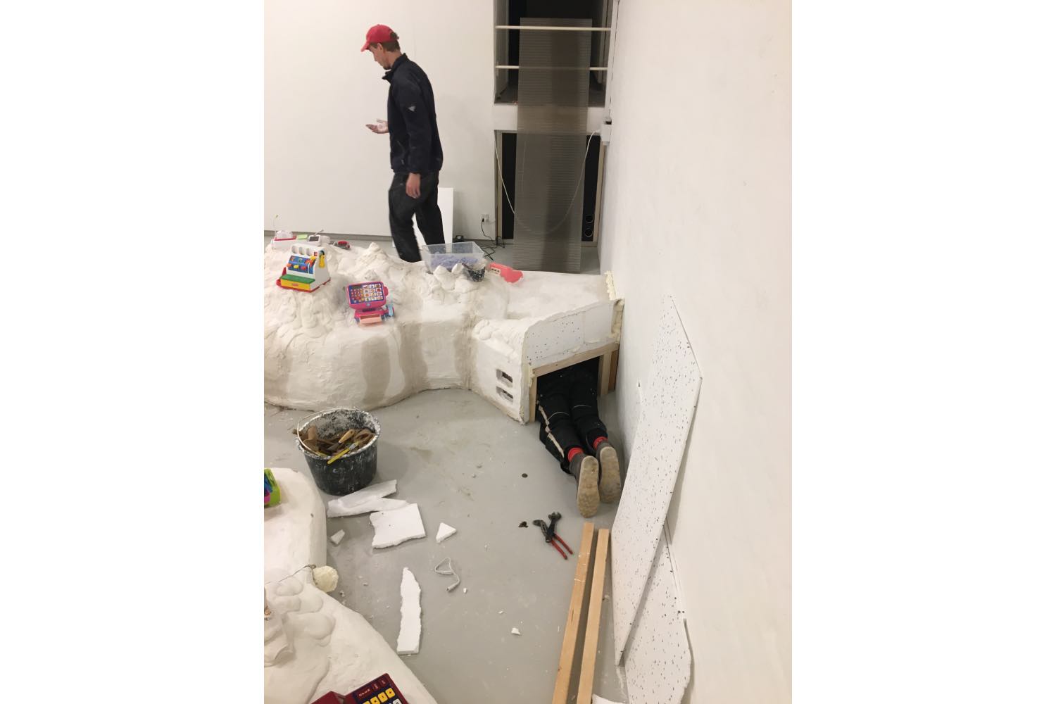 In regards to the subject of audiences more broadly: To me, art remains one of the few fields I know where you’re actually allowed to have a completely antagonistic relationship with your audience, with your customer. Honestly, I’m not even sure I’m interested unless that’s the case. Almost everything else today starts from the idea of the customer. Like, if no one wants to buy the product, does that mean it’s no good? I’m not so sure about that. So IFB tries to allow for the works and the shows to be both antagonistic and humorous. On a social scale, the space is almost jovial in its attempt to make people feel welcome, and to generate a hospitable and anti-snobbish atmosphere around the place, and whenever you as an audience come here, I always give a tour of the show and try to help people to fully experience the show.